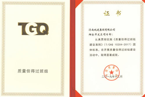 集团烟台开发区项目部荣获中国质量协会“质量信得过班组”